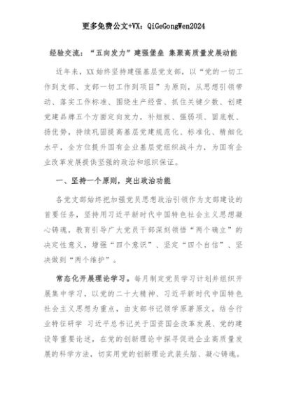 【七哥公文】2025年:经验交流:“五向发力”建强堡垒 集聚高质量发展动能+更多免费公文+VX:QiGeGongWen2024+更多免费公文+VX:QiGeGongWen2024