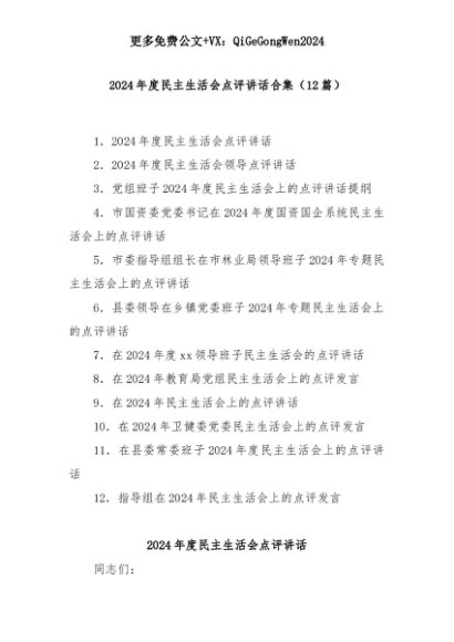 【七哥公文】2025年:(12篇)2024年度民主生活会点评讲话合集+更多免费公文+VX:QiGeGongWen2024+更多免费公文+VX:QiGeGongWen2024