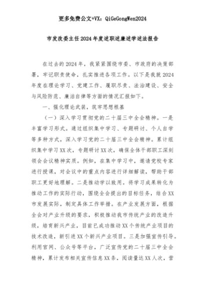 【七哥公文】2025年:市发改委主任2024年度述职述廉述学述法报告+更多免费公文+VX:QiGeGongWen2024+更多免费公文+VX:QiGeGongWen2024