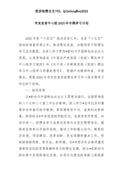 【七哥公文】2025年:市发改委中心组2025年专题学习计划+更多免费公文+VX:QiGeGongWen2024+更多免费公文+VX:QiGeGongWen2024