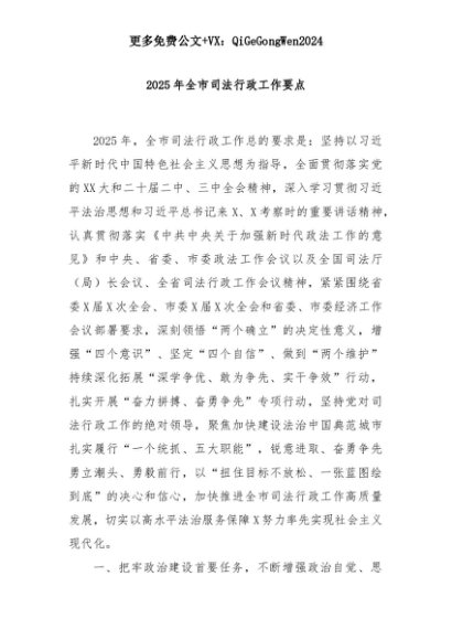 【七哥公文】2025年:2025年全市司法行政工作要点+更多免费公文+VX:QiGeGongWen2024+更多免费公文+VX:QiGeGongWen2024