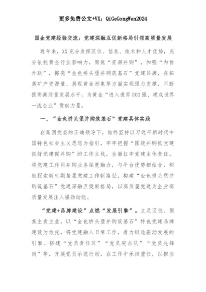 【七哥公文】2025年:国企党建经验交流:党建深融互促新格局引领高质量发展+更多免费公文+VX:QiGeGongWen2024+更多免费公文+VX:QiGeGongWen2024