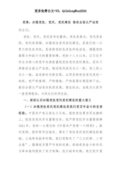 【七哥公文】2025年:党课:加强党性、党风、党纪建设 推进全面从严治党+更多免费公文+VX:QiGeGongWen2024+更多免费公文+VX:QiGeGongWen2024