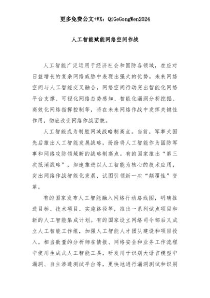 【七哥公文】2025年:人工智能赋能网络空间作战+更多免费公文+VX:QiGeGongWen2024+更多免费公文+VX:QiGeGongWen2024