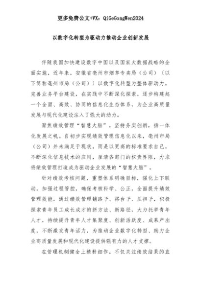 【七哥公文】2025年:以数字化转型为驱动力推动企业创新发展+更多免费公文+VX:QiGeGongWen2024+更多免费公文+VX:QiGeGongWen2024