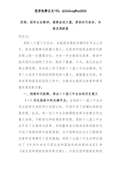 【七哥公文】2025年:党课:深学全会精神,凝聚奋进力量,勇担时代使命,共谱发展新篇+更多免费公文+VX:QiGeGongWen2024+更多免费公文+VX:QiGeGongWen2024