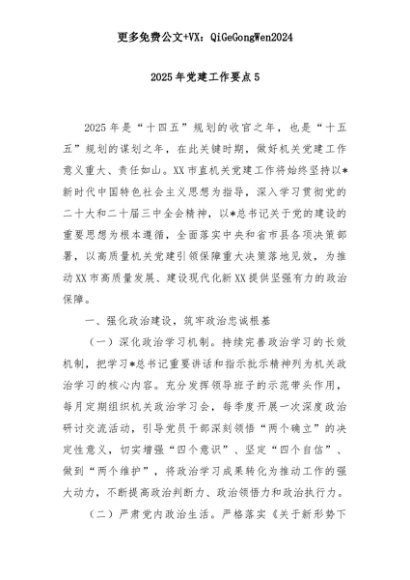 【七哥公文】2025年:2025年党建工作要点5+更多免费公文+VX:QiGeGongWen2024+更多免费公文+VX:QiGeGongWen2024