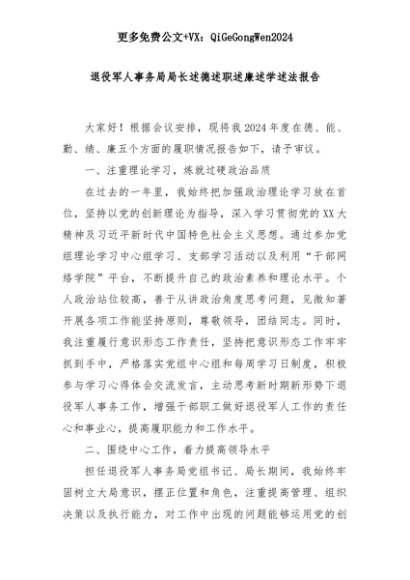 【七哥公文】2025年:退役军人事务局局长述德述职述廉述学述法报告+更多免费公文+VX:QiGeGongWen2024+更多免费公文+VX:QiGeGongWen2024