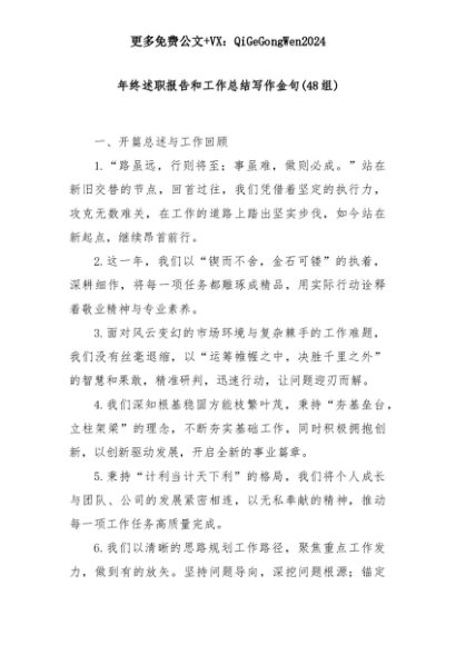 【七哥公文】2025年:(48组)年终述职报告和工作总结写作金句+更多免费公文+VX:QiGeGongWen2024+更多免费公文+VX:QiGeGongWen2024