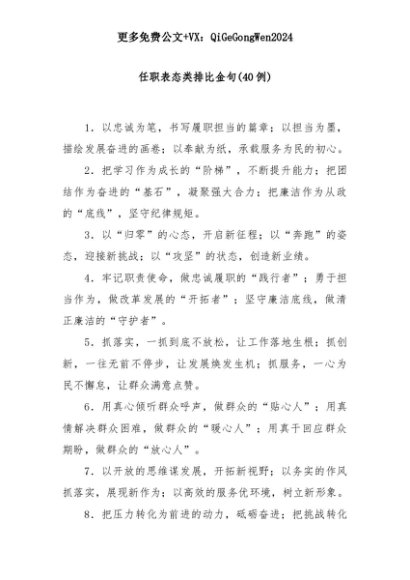 【七哥公文】2025年:(40例)任职表态类排比金句+更多免费公文+VX:QiGeGongWen2024+更多免费公文+VX:QiGeGongWen2024