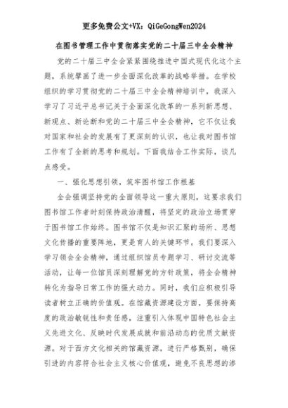 【七哥公文】2025年:在图书管理工作中贯彻落实党的二十届三中全会精神+更多免费公文+VX:QiGeGongWen2024+更多免费公文+VX:QiGeGongWen2024