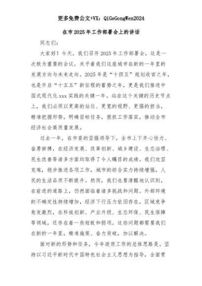 【七哥公文】2025年:在市2025年工作部署会上的讲话+更多免费公文+VX:QiGeGongWen2024+更多免费公文+VX:QiGeGongWen2024