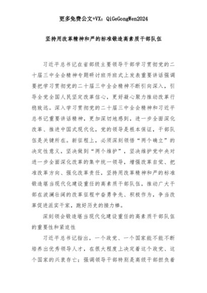 【七哥公文】2025年:坚持用改革精神和严的标准锻造高素质干部队伍+更多免费公文+VX:QiGeGongWen2024+更多免费公文+VX:QiGeGongWen2024