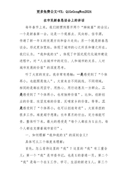 【七哥公文】2025年:在市民新春恳谈会上的讲话+更多免费公文+VX:QiGeGongWen2024+更多免费公文+VX:QiGeGongWen2024