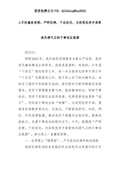 【七哥公文】2025年:2月份廉政党课:严明纪律,干在实处,为实现良好开局营造风清气正的干事创业氛围+更多免费公文+VX:QiGeGongWen2024+更多免费公文+VX:QiGeGongWen2024