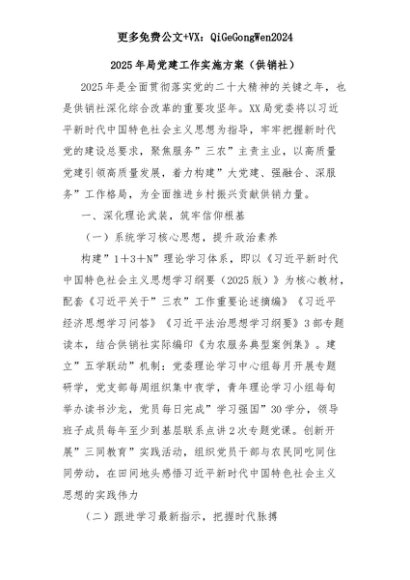 【七哥公文】2025年:2025年局党建工作实施方案(供销社)+更多免费公文+VX:QiGeGongWen2024+更多免费公文+VX:QiGeGongWen2024