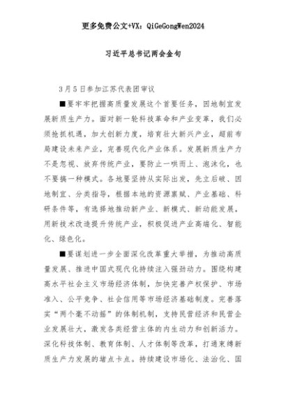 【七哥公文】2025年:习近平总书记两会金句+更多免费公文+VX:QiGeGongWen2024+更多免费公文+VX:QiGeGongWen2024