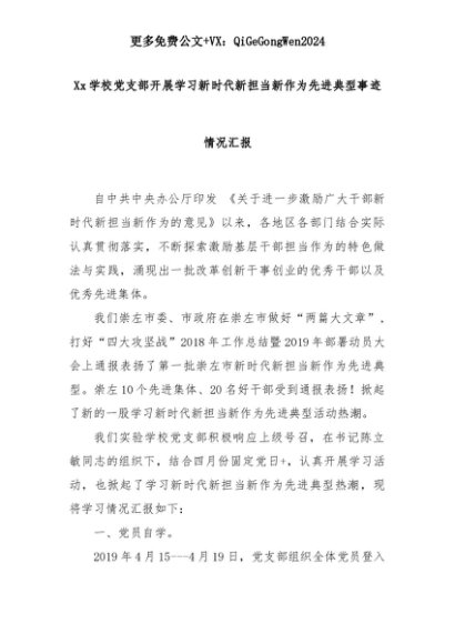 【七哥公文】2025年:Xx学校党支部开展学习新时代新担当新作为先进典型事迹情况汇报+更多免费公文+VX:QiGeGongWen2024+更多免费公文+VX:QiGeGongWen2024