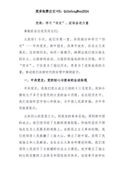 【七哥公文】2025年:党课:学习“四史”,汲取奋进力量+更多免费公文+VX:QiGeGongWen2024+更多免费公文+VX:QiGeGongWen2024