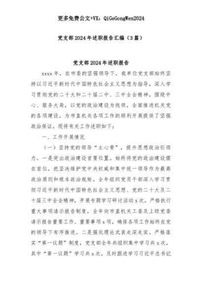 【七哥公文】2025年:(3篇)党支部2024年述职报告汇编+更多免费公文+VX:QiGeGongWen2024+更多免费公文+VX:QiGeGongWen2024