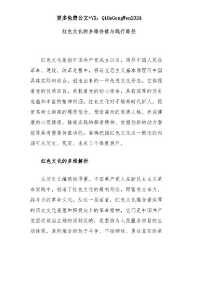 【七哥公文】2025年:红色文化的多维价值与践行路径+更多免费公文+VX:QiGeGongWen2024+更多免费公文+VX:QiGeGongWen2024