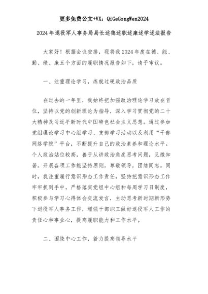 【七哥公文】2025年:2024年退役军人事务局局长述德述职述廉述学述法报告+更多免费公文+VX:QiGeGongWen2024+更多免费公文+VX:QiGeGongWen2024