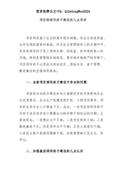 【七哥公文】2025年:项目部领导班子建设的几点思考+更多免费公文+VX:QiGeGongWen2024+更多免费公文+VX:QiGeGongWen2024