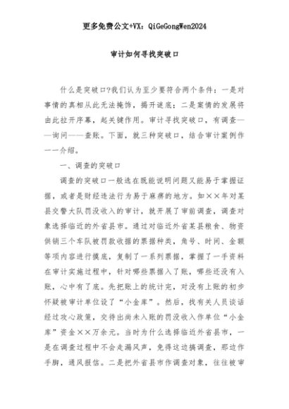 【七哥公文】2025年:审计如何寻找突破口+更多免费公文+VX:QiGeGongWen2024+更多免费公文+VX:QiGeGongWen2024