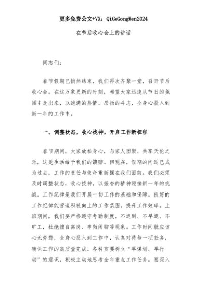 【七哥公文】2025年:在节后收心会上的讲话+更多免费公文+VX:QiGeGongWen2024+更多免费公文+VX:QiGeGongWen2024