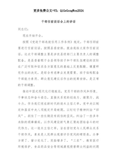 【七哥公文】2025年:干部任前谈话会上的讲话+更多免费公文+VX:QiGeGongWen2024+更多免费公文+VX:QiGeGongWen2024