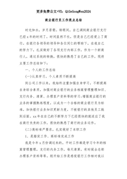【七哥公文】2025年:商业银行员工作亮点总结+更多免费公文+VX:QiGeGongWen2024+更多免费公文+VX:QiGeGongWen2024