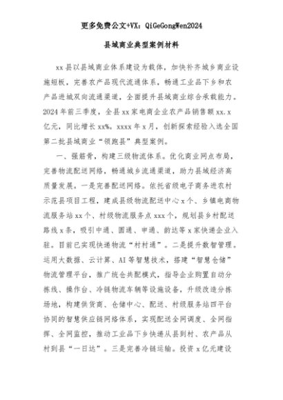 【七哥公文】2025年:县域商业典型案例材料+更多免费公文+VX:QiGeGongWen2024+更多免费公文+VX:QiGeGongWen2024