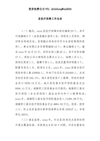【七哥公文】2025年:县医疗保障工作总结+更多免费公文+VX:QiGeGongWen2024+更多免费公文+VX:QiGeGongWen2024