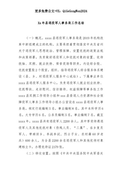 【七哥公文】2025年:Xx年县退役军人事务局工作总结+更多免费公文+VX:QiGeGongWen2024+更多免费公文+VX:QiGeGongWen2024