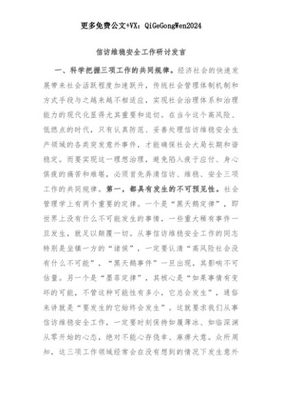 【七哥公文】2025年:信访维稳安全工作研讨发言+更多免费公文+VX:QiGeGongWen2024+更多免费公文+VX:QiGeGongWen2024