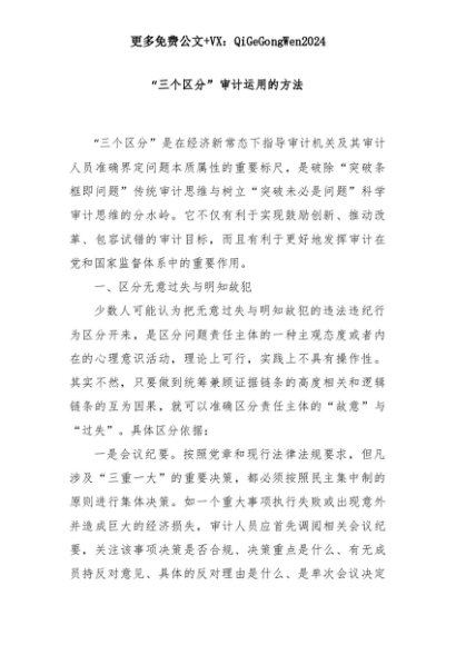 【七哥公文】2025年:“三个区分”审计运用的方法+更多免费公文+VX:QiGeGongWen2024+更多免费公文+VX:QiGeGongWen2024