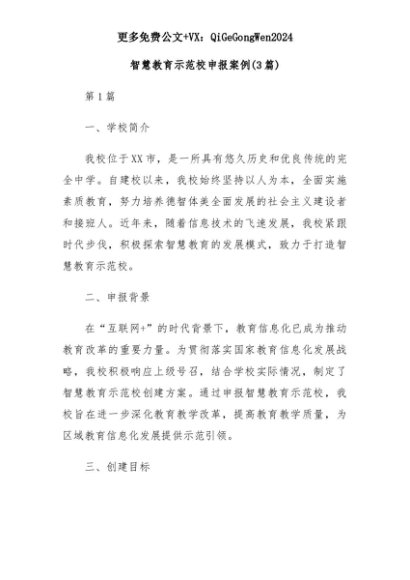 【七哥公文】2025年:(3篇)智慧教育示范校申报案例+更多免费公文+VX:QiGeGongWen2024+更多免费公文+VX:QiGeGongWen2024
