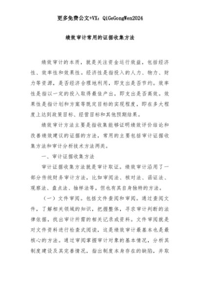 【七哥公文】2025年:绩效审计常用的证据收集方法+更多免费公文+VX:QiGeGongWen2024+更多免费公文+VX:QiGeGongWen2024