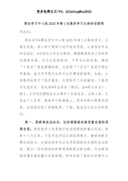 【七哥公文】2025年:理论学习中心组2025年第1次集体学习主持讲话提纲+更多免费公文+VX:QiGeGongWen2024+更多免费公文+VX:QiGeGongWen2024