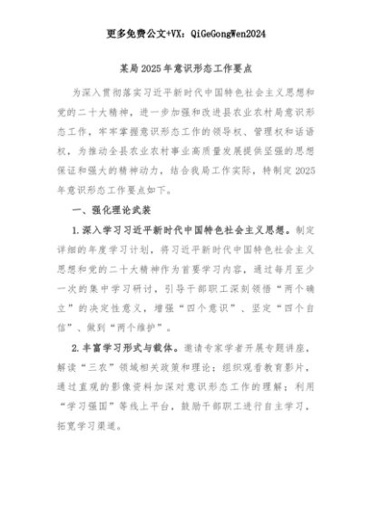 【七哥公文】2025年:某局2025年意识形态工作要点+更多免费公文+VX:QiGeGongWen2024+更多免费公文+VX:QiGeGongWen2024