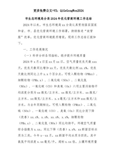【七哥公文】2025年:市生态环境局分局2024年优化营商环境工作总结+更多免费公文+VX:QiGeGongWen2024+更多免费公文+VX:QiGeGongWen2024