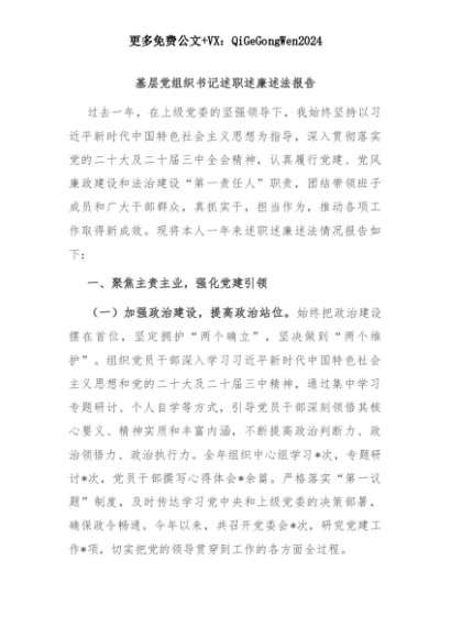 【七哥公文】2025年:基层党组织书记述职述廉述法报告+更多免费公文+VX:QiGeGongWen2024+更多免费公文+VX:QiGeGongWen2024