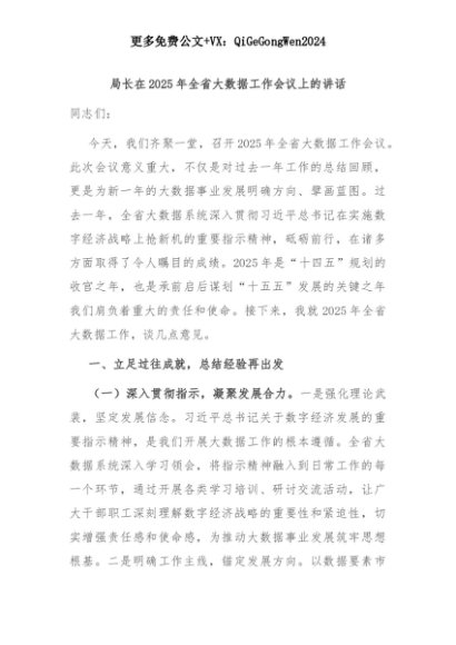 【七哥公文】2025年:局长在2025年全省大数据工作会议上的讲话+更多免费公文+VX:QiGeGongWen2024+更多免费公文+VX:QiGeGongWen2024