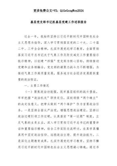 【七哥公文】2025年:基层党支部书记抓基层党建工作述职报告+更多免费公文+VX:QiGeGongWen2024+更多免费公文+VX:QiGeGongWen2024