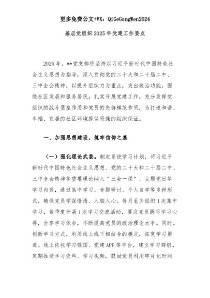 【七哥公文】2025年:基层党组织2025年党建工作要点+更多免费公文+VX:QiGeGongWen2024+更多免费公文+VX:QiGeGongWen2024