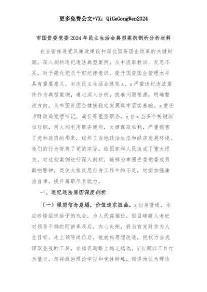 【七哥公文】2025年:市国资委党委2024年民主生活会典型案例剖析分析材料+更多免费公文+VX:QiGeGongWen2024+更多免费公文+VX:QiGeGongWen2024
