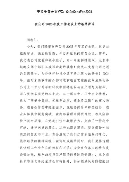 【七哥公文】2025年:在公司2025年度工作会议上的总结讲话+更多免费公文+VX:QiGeGongWen2024+更多免费公文+VX:QiGeGongWen2024