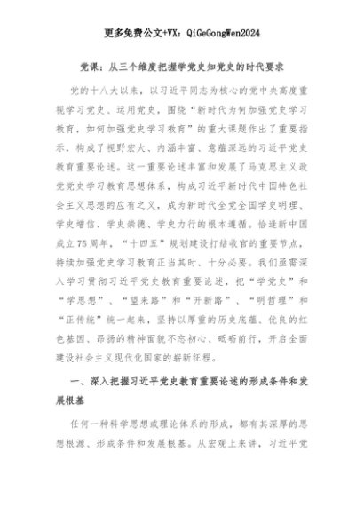 【七哥公文】2025年:党课:从三个维度把握学党史知党史的时代要求+更多免费公文+VX:QiGeGongWen2024+更多免费公文+VX:QiGeGongWen2024