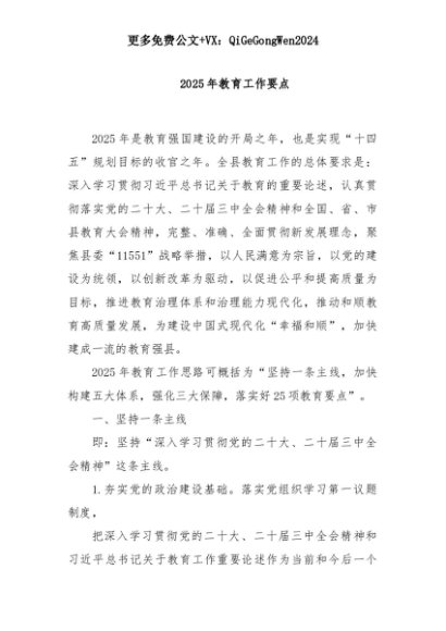 【七哥公文】2025年:2025年教育工作要点+更多免费公文+VX:QiGeGongWen2024+更多免费公文+VX:QiGeGongWen2024