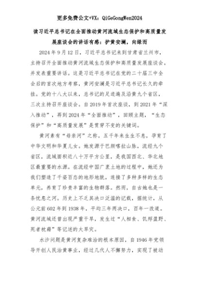 【七哥公文】2025年:读习近平总书记在全面推动黄河流域生态保护和高质量发展座谈会的讲话有感:护黄安澜,向绿而+更多免费公文+VX:QiGeGongWen2024+更多免费公文+VX:QiGeGongWen2024
